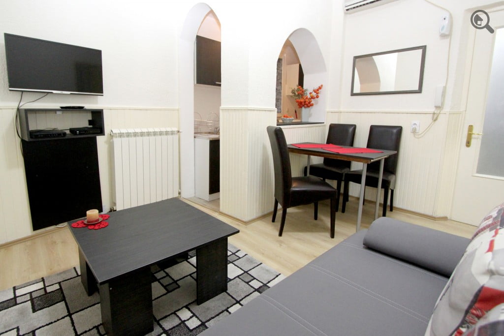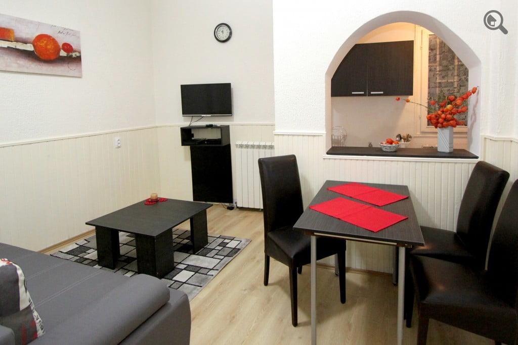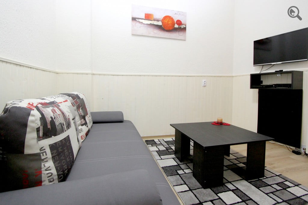 Apartman se sastoji od prostrane dnevne sobe sa kaučem na razvlačenje, udobne spavaće sobe sa bračnim krevetom, potpuno opremljene kuhinje i modernog kupatila. Uz to, uživaćete u dodatnim pogodnostima kao što su centralno grejanje, klima uređaj, besplatan Wi-Fi pristup, televizor sa kablovskim kanalima, kao i čista posteljina i peškiri.